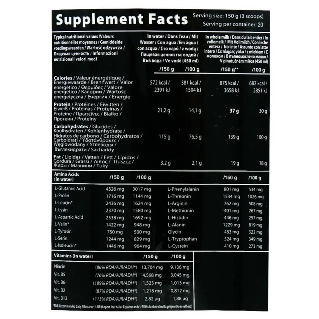 - روزانه، 1 الی 2 پیمانه (معادل 150 گرم) از این مکمل را در 450 میلی لیتر آب حل کرده و قبل یا بعد از تمرین بخورید.