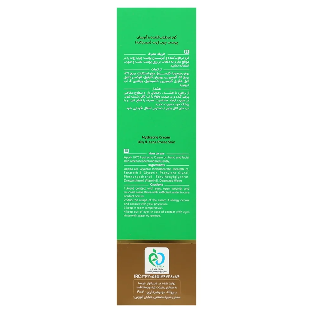 کرم آبرسان پوستهای چرب و مستعد آکنه ژوت (مدل HYDRACNE ) مناسب رطوبترسانی به پوستهای چرب و مستعد آکنه میباشد و با بافت ژلی سبکی که دارد به سرعت جذب میشود و هیچ اثری از چربی باقی نمیگذارد. این محصول به از بین بردن کم آبی و خشکی پوست کمک میکند و در عین حال موجب تشدید آکنه نیز نمیشود. کرم آبرسان ژوت با داشتن شی باتر، روغن چای سبز، زینک PCA و ویتامین B5 یک محصول ضدالتهاب بوده و تسکیندهنده پوست نیز میباشد.