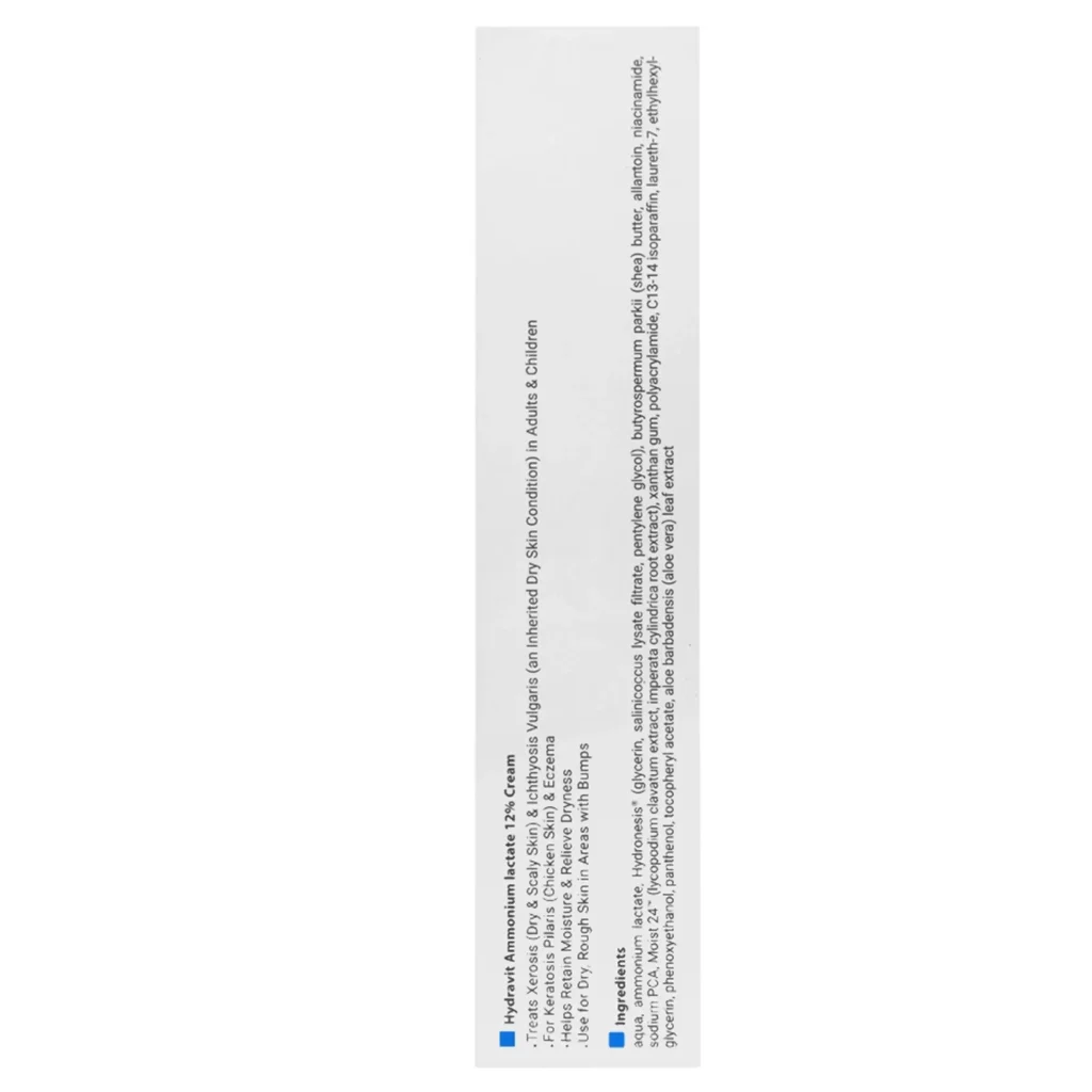 کرم آمونیوم لاکتاک 12% هیدراویت ویتالیر یک محصول مرطوب کننده و ترمیم کننده پوست است که برای رفع خشکی، خارش، قرمزی و زبری پوست مناسب است. کرم آمونیوم لاکتات برای پوست مرغی با داشتن ترکیبات موثر و ۱۲ درصد آمونیوم لاکتات، پوست را نرم، صاف و شاداب میکند و در بهبود مشکلات پوست مرغی، اگزما و پوسته پوسته شدن موثر است. آمونیوم لاکتات یک ترکیب آلفا هیدروکسی اسید است که باعث از بین رفتن سلولهای مرده پوست و تحریک تولید سلولهای جدید میشود. این ترکیب همچنین با افزایش رطوبت پوست، خشکی و التهاب را کاهش میدهد.