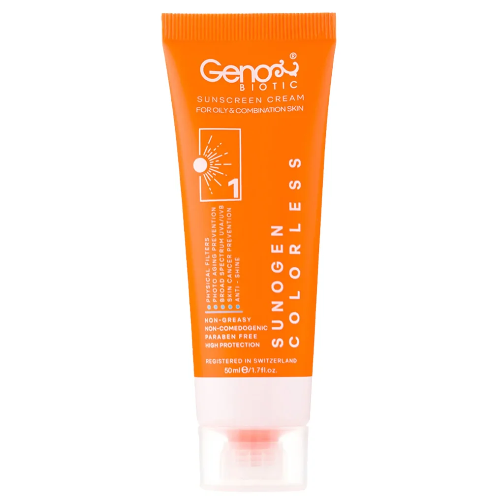 کرم ضد آفتاب ژنوبایوتیک (SPF 50)، یکی از محصولات آرایشی است که از آسیب رساندن به پوست در مقابل اشعههای خورشید جلوگیری میکند.