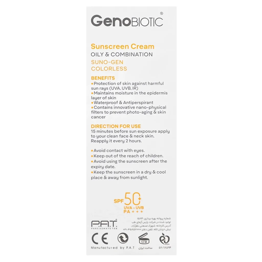 کرم ضد آفتاب پوست چرب و مختلط ژنوبایوتیک (SPF 50)