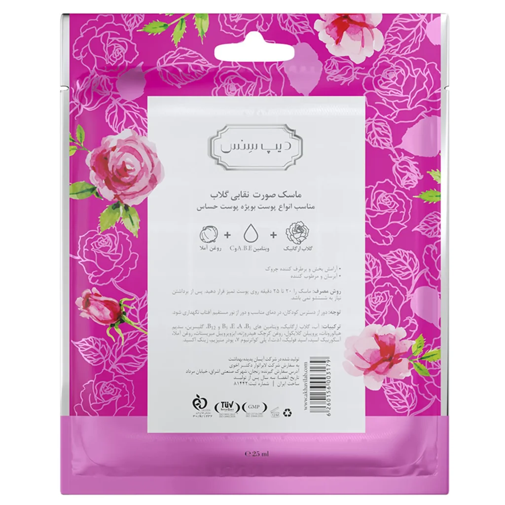 ویژگیهای ماسک صورت نقابی پوست حساس دیپ سنس (حاوی گلاب)