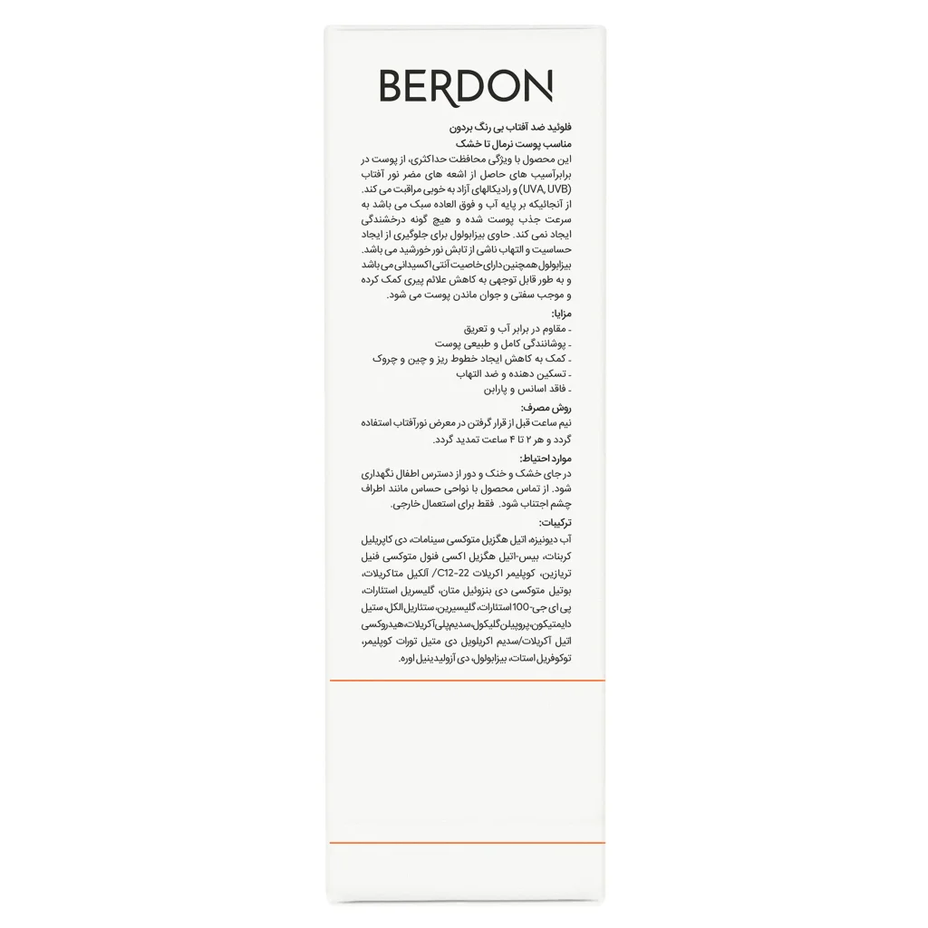 ویژگیهای کرم ضد آفتاب بی رنگ پوست نرمال تا خشک بردون