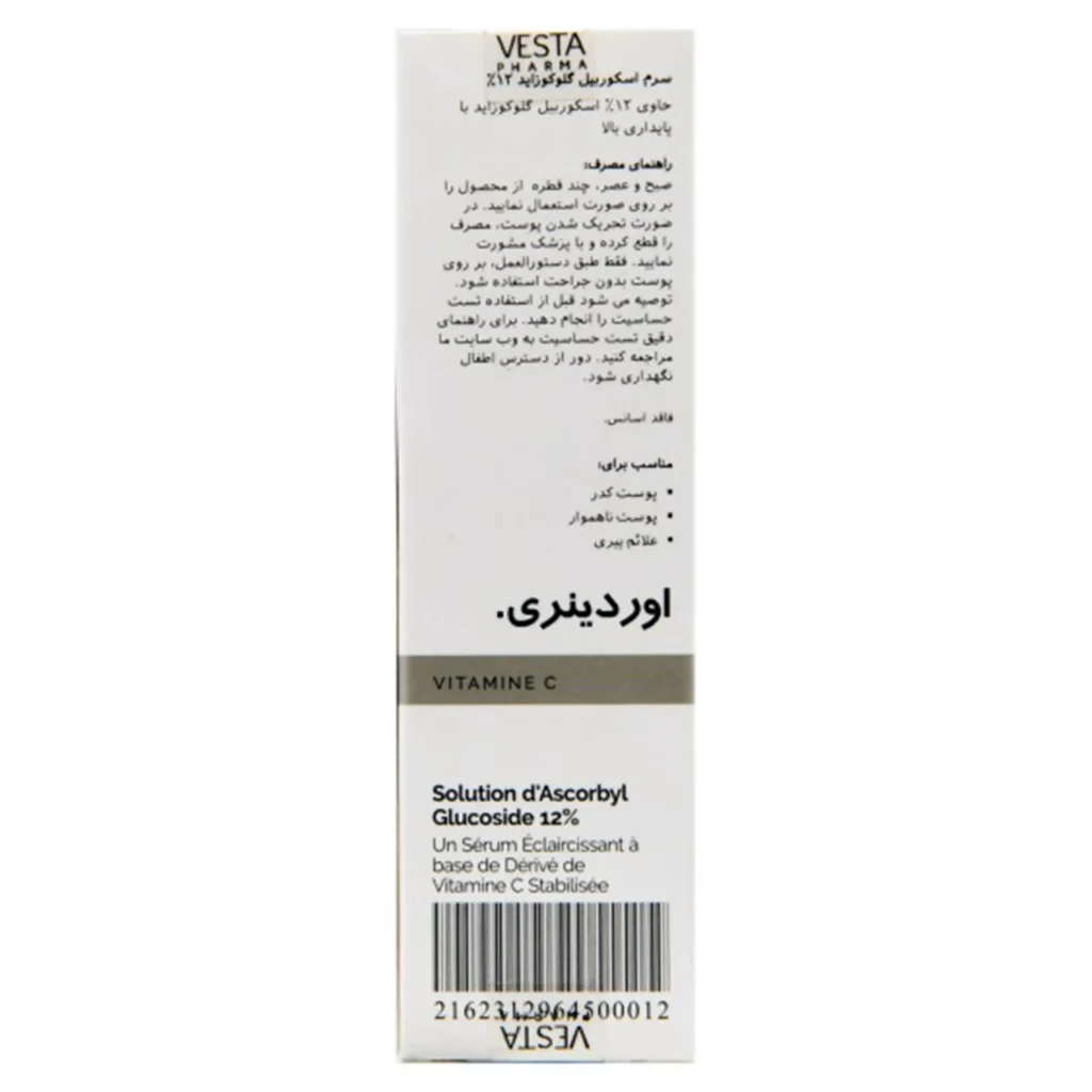 ویژگیهای سرم ویتامین C اسکوربیل گلوکوزاید 12% اوردینری