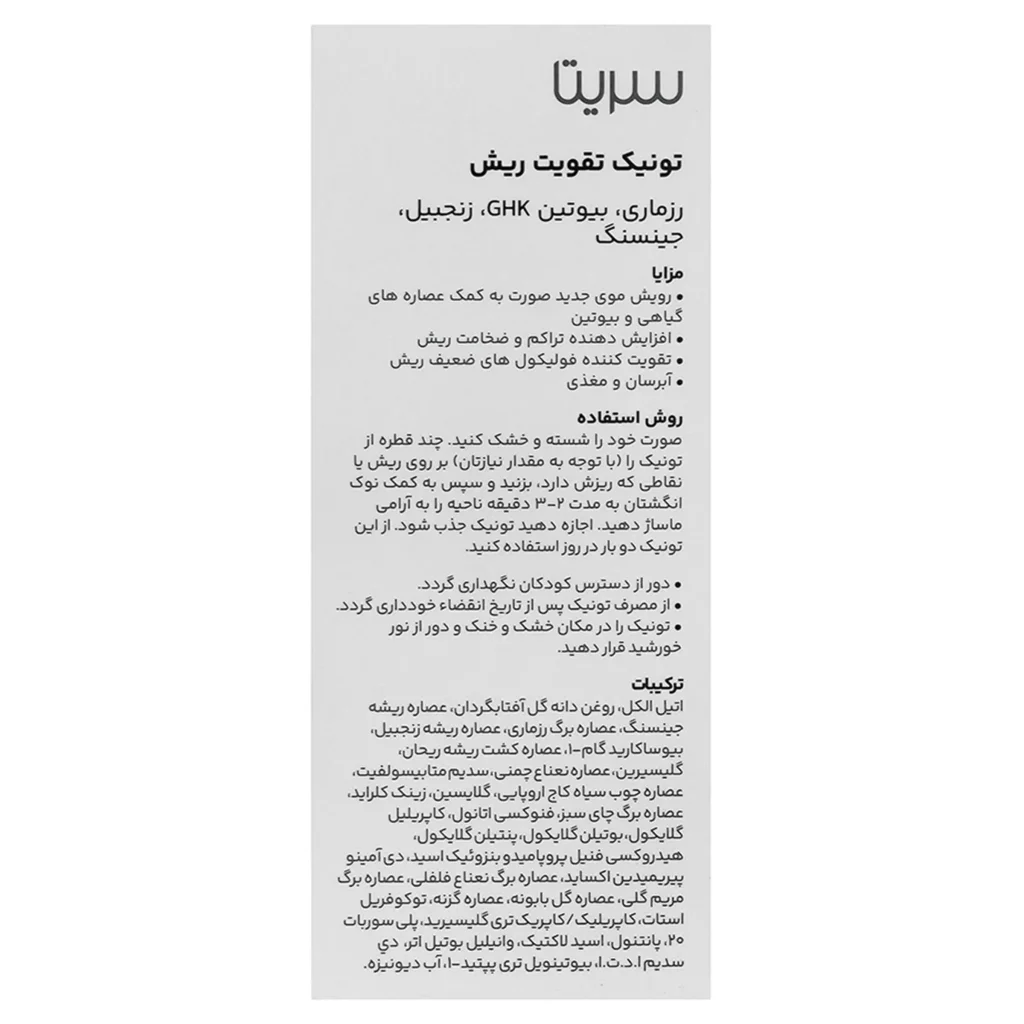تونیک تقویت ریش سریتا نه تنها یک محصول مراقبت از ریش، بلکه یک تجربه کامل برای مردانی است که به دنبال بهترین هستند. این محصول انتخابی هوشمندانه برای مردانی است که به دنبال بهترینها در زندگی خود هستند.