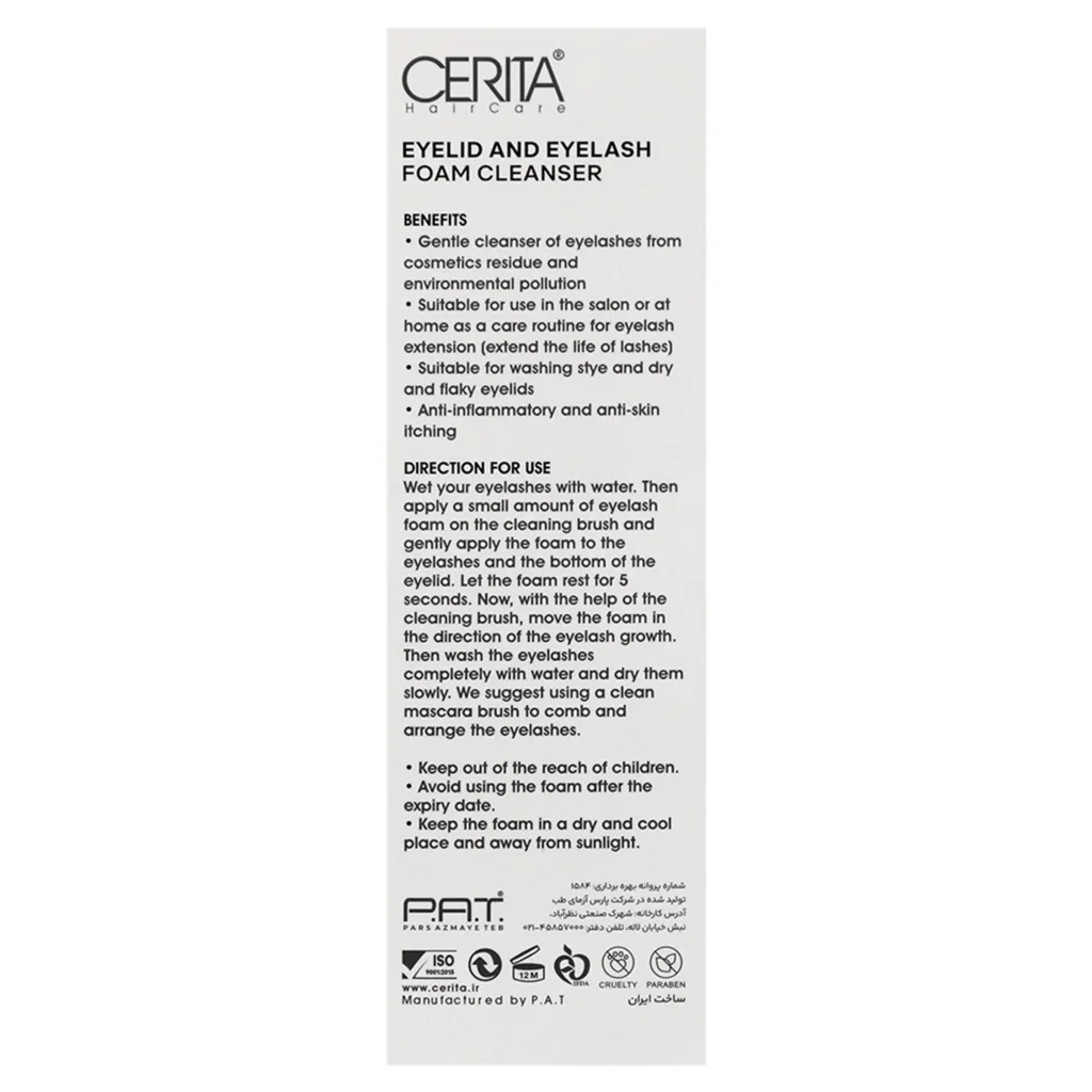 ویژگیهای شامپو فوم شستشوی پلک و مژه سریتا