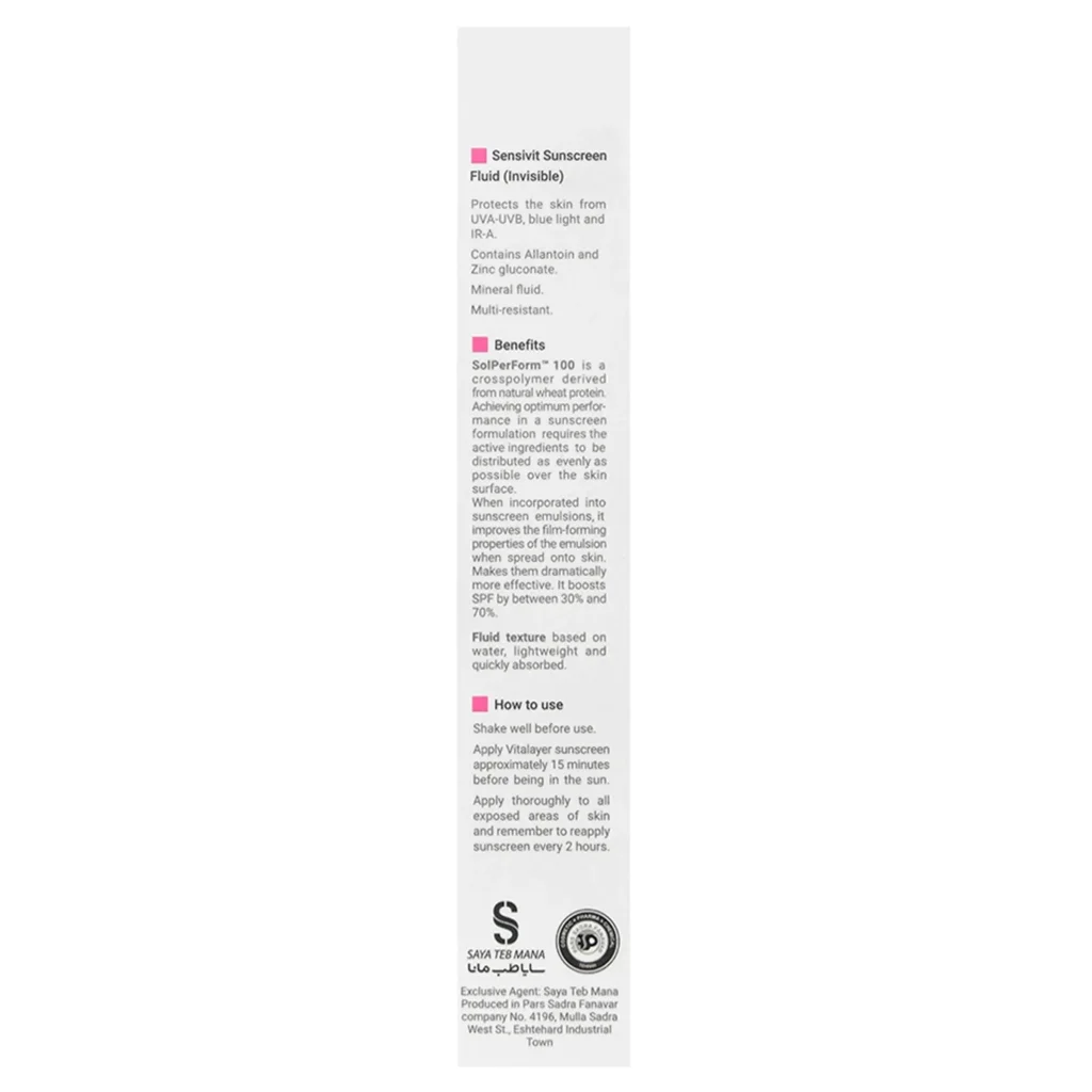 کرم ضدآفتاب پوست حساس ویتالیر SPF 50 دارای دکسپانتول، ویتامین E و سدیم هیالورونات است. این مواد باعث رطوبترسانی، آبرسانی، خنثی کردن اثر رادیکالهای آزاد، جلوگیری از بروز جوش و لک و خشکی پوست میشوند.