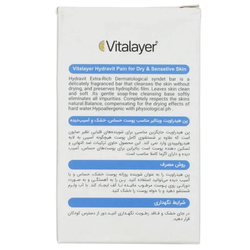 پن پوست خشک، حساس و آسیبپذیر ویتالیر (Hydravit) یک پن مخصوص شسشتوی پوستهای خشک و حساس است. این محصول یک جایگزین عالی برای شویندههای صابونی است که پوست را به طور کامل تمیز میکند و آلودگیها را پاک میکند اما به لایهی هیدرولیپیدی پوست هیچ آسیبی وارد نمیکند.