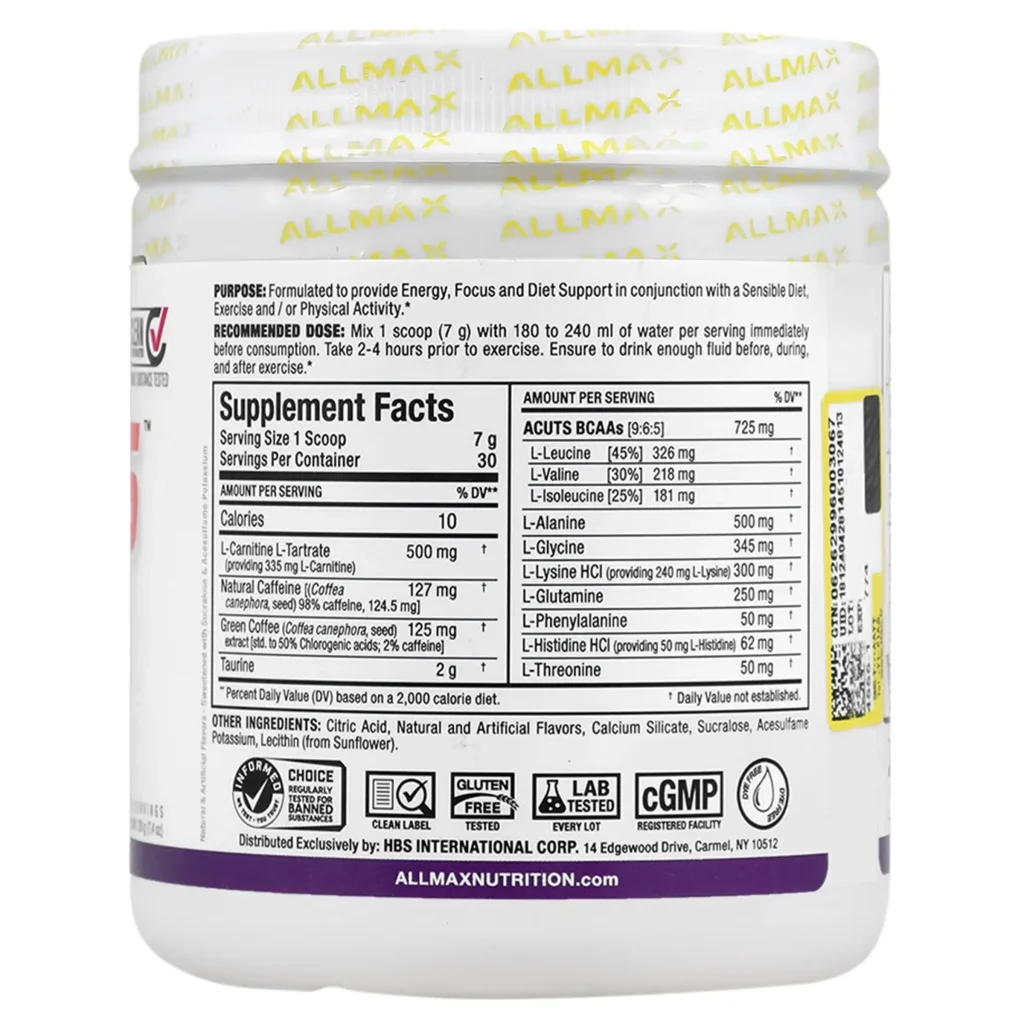 دارای انواع اسید آمینهها، ال کارنیتین و کافئین